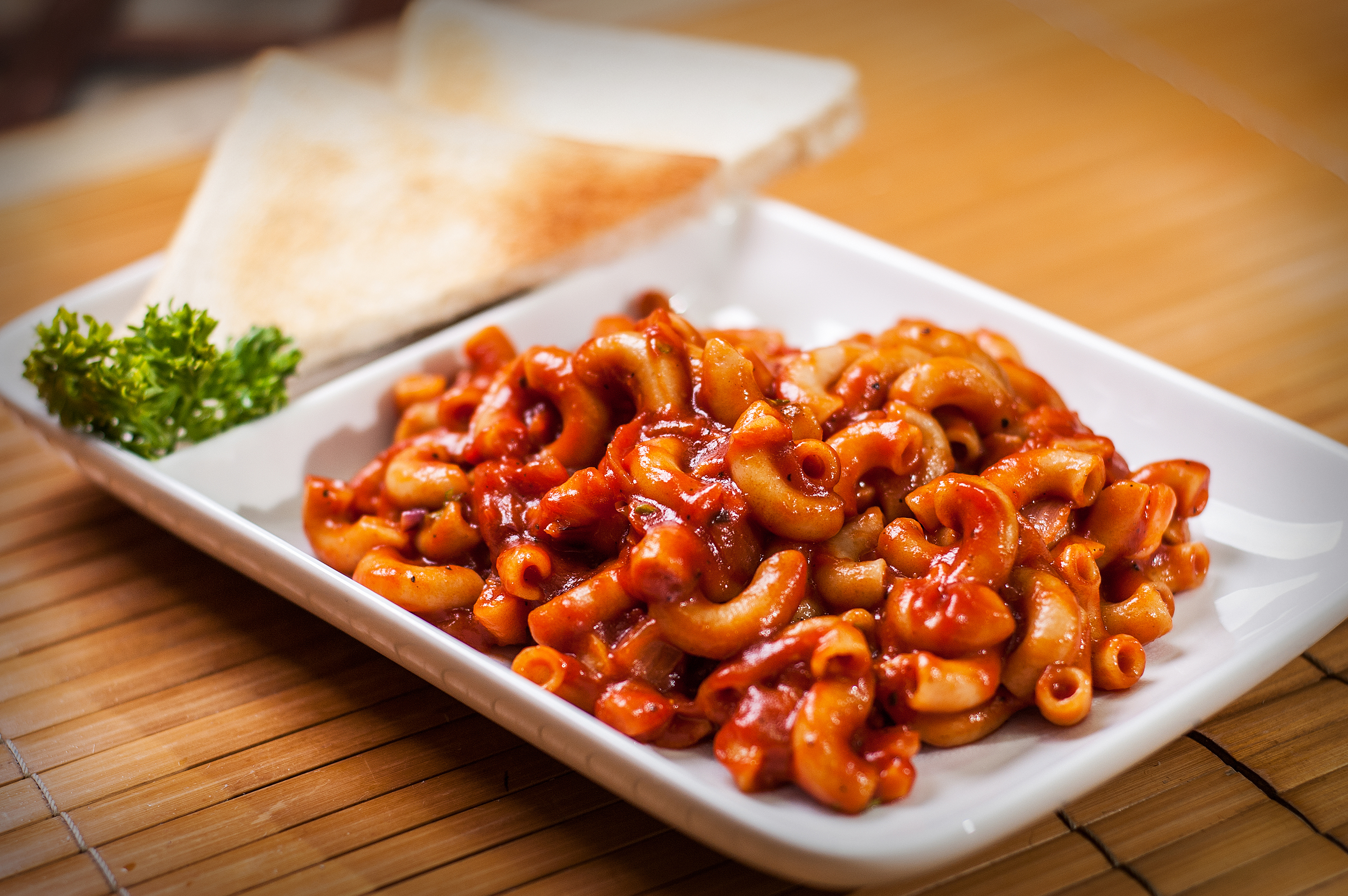 Pasta dish of Italian origin, made with broad ruffled noodles and a tomato or white sauce